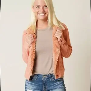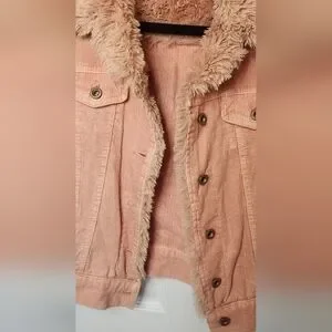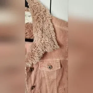 White Crow size small pink corduroy faux fur lined trucker jacket warm soft