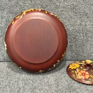 Tole painted wooden box with lid 8” round floral artisan bohemian storage NWT. Stunning piece. 15 oz.