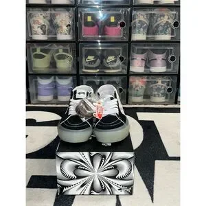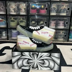 Discover the Vans Sk8-Mid VLT LX, a standout from the Vans x Palm Angels collaboration. These unisex sneakers, in a sleek black canvas and suede, feature a striking Palm Angels print that adds a bold touch to any outfit. With durable construction, padded collars for comfort, and the iconic Vans waffle sole, these sneakers are perfect for casual outings, whether you're exploring the city or hanging out with friends. Designed for fall, they offer a stylish and comfortable fit for any casual occasion. New in box, DS. OG ALL. ALL SALES FINAL.