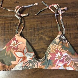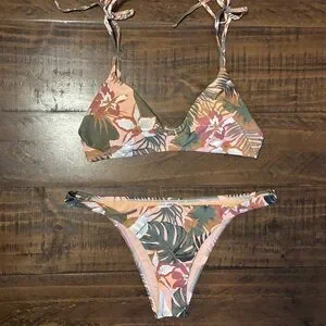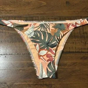 Ron Jon Swimsuit Two Piece Cheeky Bikini Tropical Print Size L Peach Green