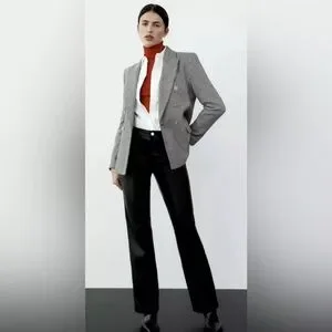 Zara DOUBLE BREASTED HOUNDSTOOTH BLAZER