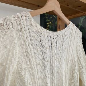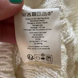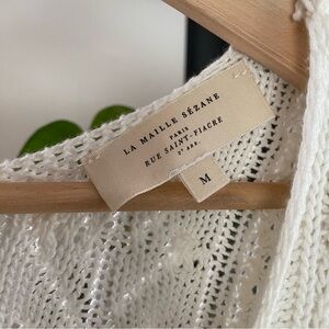 Lovely women’s Sezane Cream White Beryl Cardigan Sweater. Organic cotton long sleeve cardigan - Fancy knitting - V neckline - Wear as a sweater with back opening or as a cardigan with front opening