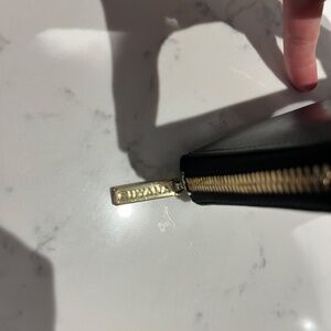 In used condition with normal wear and tear for smooth leather (light surface scratching) as well as scratches on the hardware zip pull (see pics). Feel free to ask questions!