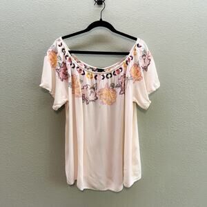 Torrid Cream Off Shoulder Floral Print Boho Southwestern Short Sleeve Blouse