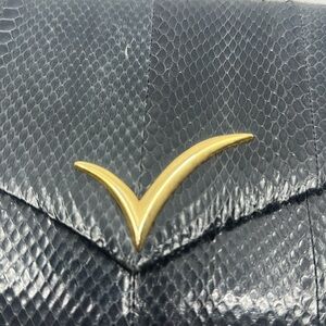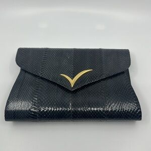 Vanna White blue snakeskin clutch shoulder bag, Labeled Vanna White. In great vintage condition, photos show some wear. Goldtone detail, magnetic snap closure with tucking goldtone metal chain strap. OFFERS ARE WELCOME!