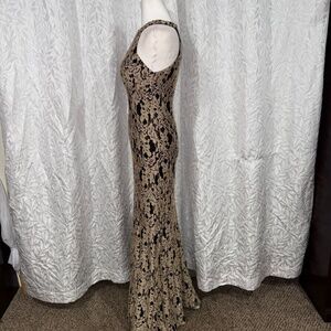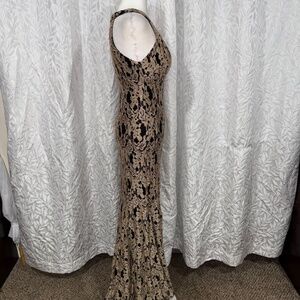 black and gold body con formal prom halter fitted size small bridesmaid dress