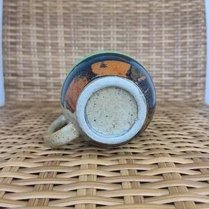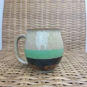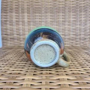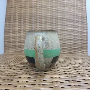 Coffee Tea Ceramic Handmade Handled Mug Cup Green Brown