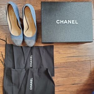 Chanel Denim & Chainlink Pumps $420 - worn once Sz 7.5