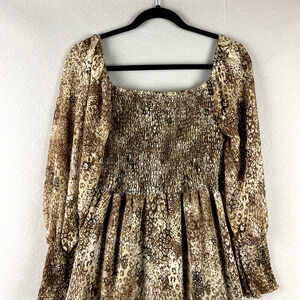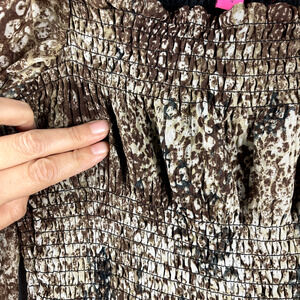 Betsey Johnson Tiered Midi Dress Womens Small Animal Print Sheer Ruched Ruffle