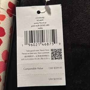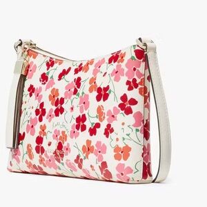 This stylish Kate Spade crossbody bag features a vibrant floral design in pink and red. Perfect for adding a pop of color to any outfit. Start that spring wardrobe!