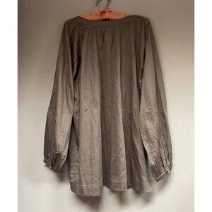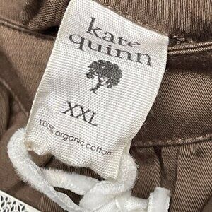 New Kate Quinn Size XXL Organic Cotton Split-Neck Tunic Blouse Lagenlook Brown