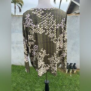 PreOwned Manuhealii Blouse Long Sleeves Green Hawaiian Print Women's Small