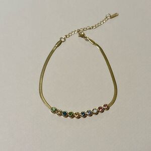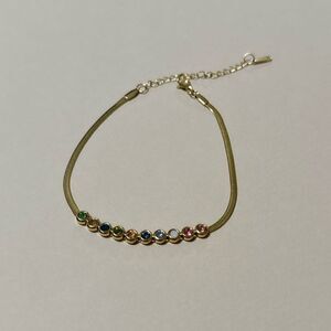 Multicolor rhinestone decor snake chain anklet in gold tone hardware