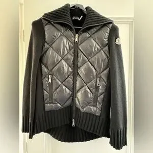 Moncler Women's Mixed Media Zip Cardigan - Size (Small) - Black