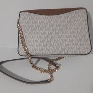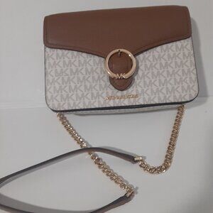Wanda Small Logo and Pebble Leather Cross-body bag, Cream & Brown