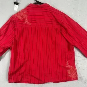 CJ Banks Womens Button Up Top Stripes Red Plus Size 1X