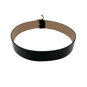 Crafted in Italy, this lustrous hip belt is an eye-catching accessory that will become a staple in your everyday wardrobe. Designed with a high polish, rounded gold buckle on a fine Italian patent leather strap with a very fine shimmer to it.