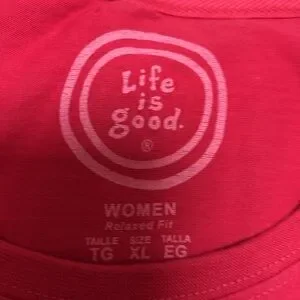 Please note that I have taken additional pictures of the Life is Good Shirt for you. I hope this answers any questions that you may have.