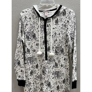Victoria's Secret Pajamas Fireside Medium Hood Pom Pom Pajamas Black White