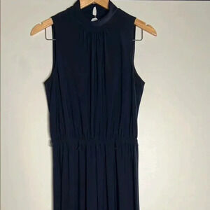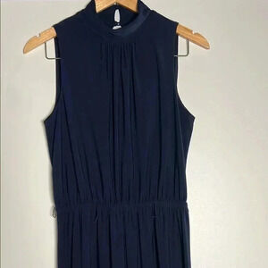 Women's Blue Sleeveless Jumpsuit Mock Neck - Wide Legs Very Cute Corporate Look