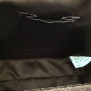 Single strap hinged frame with brushed brass kiss-lock closure. Silk lined with one zippered pocket and one smaller side open pocket for cards. Measures approximately 9โ x 7โ x 3.5โ.