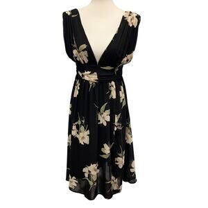 Lulu's Womens Medium Deep V Floral Flowy Cinched Waist Fit and Flare Dress