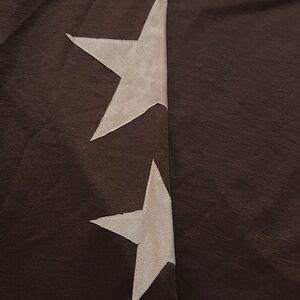 Casual long sleeve light weight t shirt with stars on the arms. Brown with pink and light pink detail on neckline, hem and wrist.