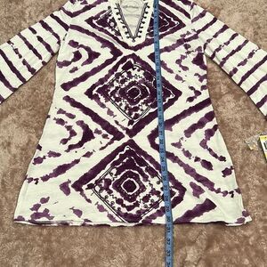 INC International Concepts White & Purple Embroidered & Sequin Tunic Size M NWT