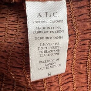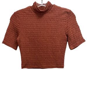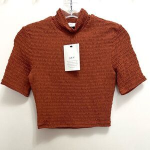 NWT A.L.C. Dana Smocked Top Short Sleeve Cropped in Deep Amber Brown Size S
