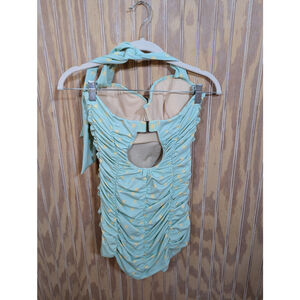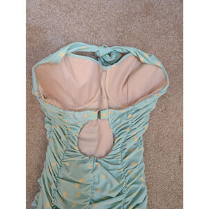 NWOT Women's Unique Vintage Swim One Piece Size L Green Yellow Polka Dot