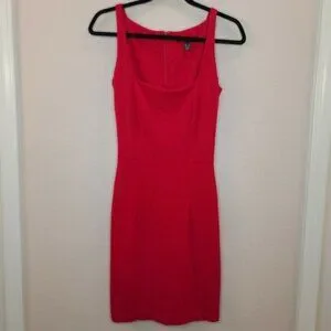 MNG Suit Womens Dress Size XS Red Knit Fitted Sheath Square Neck Stretch Cocktail