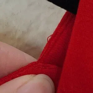 THE HOOK CLOSURE FELL OFF. MISSING THE BELT. THERE ARE SOME LOOSE THREADS. THE FABRIC DOES SHOW NORMAL WASH WEAR PILLING.