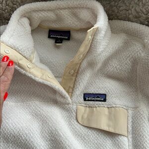 Stay cozy and stylish with the Patagonia Women's White Fleece Sweater. Perfect for chilly days, this sweater offers warmth and comfort.