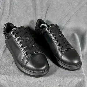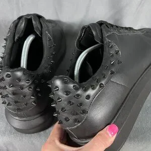 Vegan leather upper with spike embellishments on ankle collar