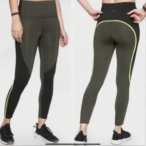 Athleta Spar Colorblock 7/8 Tight Legging Green & Black XS
