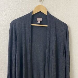 Chicos Sweater Cardigan Size 2 or Large Dark Gray Open Front