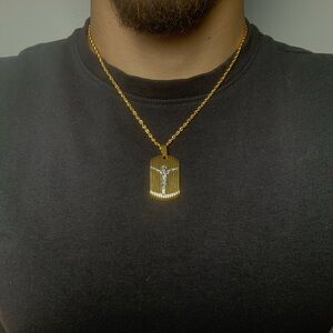 This Jesus cross pendant with its gold and silver coloring is amazing for accessories. The necklace is unisex and great for styling.
