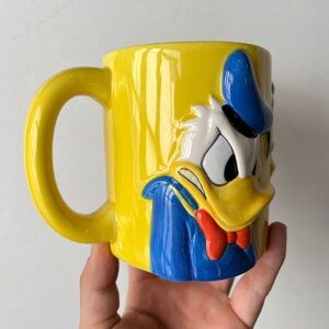 Set of two 3D mugs featuring Donald Duck and Mickey Mouse. Bright and colorful design. Perfect for Disney fans. MINOR CHIPPING ON BOTH RIMS! See images! Does not effect the 3D part