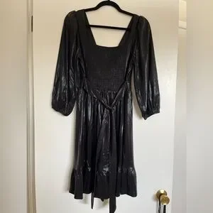 Tags: summer dress, fall dress, winter dress, shimmery, sparkly, black shimmer, mini dress, fit and flare, 3/4 sleeve, Baltic born, formal dress, fancy, cute, bridesmaid, wedding, wedding guest