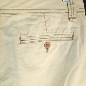 visible tan stitching around seams, pockets etc.