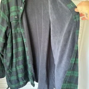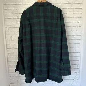 LL Bean Flannel Fleece Lined XL Tall Button Up Long Sleeve Blue Green Plaid