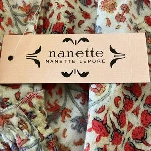 Nanette Lepore dress. 100% Rayon. Size 10 NWT. Has drawstring closure at neck and elastic waist. Approximate flat measurements are. Pit to Pit 16”. Waist 15”. Length 49” with a 17” slit in front. Note the colors which alternates from bright to muted. That’s the way it was manufactured. NWT