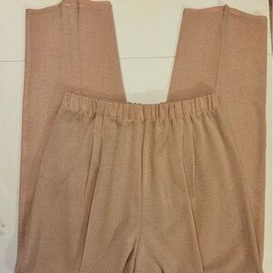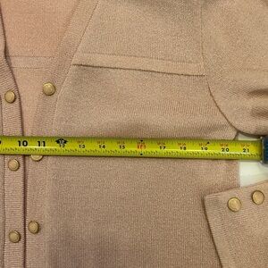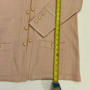 Vintage San Remo. Classic Knit Pant, Skirt, Tank and Cardigan 4 piece suit. Pale pink knit, brass tone buttons, pull on, elastic waist pant and skirt, a comfortable, put together mature look.