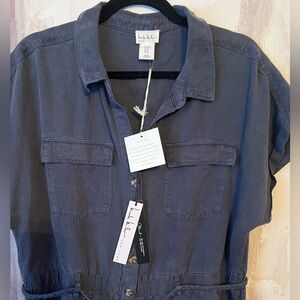 NWT - Nicole Miller Short Jumper. Blue button front jumper with tie waist. Never worn.