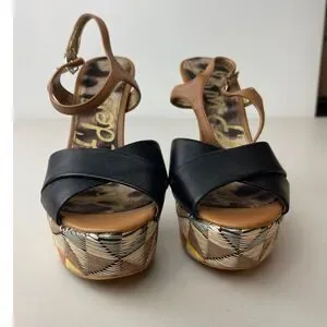 NWOB Sam Edelman Boho Woven Platform Sandals – Black & Tan Strappy Heels 6M