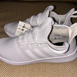 Stylish and comfortable, these Adidas woman sneakers are perfect for everyday wear. All white. Size 7. Never have been worn. No original box included.