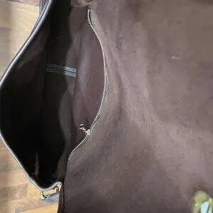 Condition, Positives, Flaws, Items to Note: very minor color loss on piping in bottom corners (shown in photos). light scuffs and scratches on the bottom of the bag and one corner of the flap (shown in photos). There is a dark mark on the front flap (also shown in picture). Interior is clean and in excellent condition.