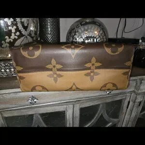 Authentic Preloved LV On the Go Reverse Mono Giant GM Tote with reverse monogram handles and straps. Authentic LV dustbag included.