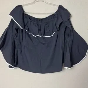 MaxSport Off The Shoulder Poplin Ruffle Frill Sleeve Top Dark Gray Size XL