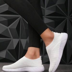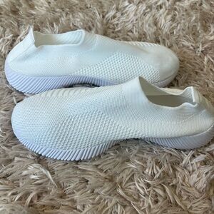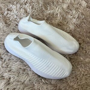 NWOT. Experience the perfect blend of style and comfort with these all-white slip-on sneakers. Crafted from a breathable mesh material, they offer a lightweight feel and excellent flexibility. The cushioned sole provides support, making them ideal for everyday wear.